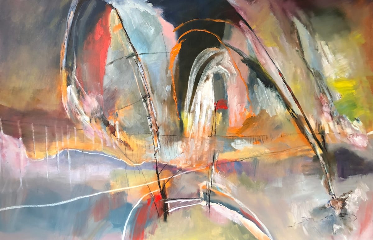 Khara Oxier It S Crowded In Here 52 X 34 Oil Graphite On Loose Canvas Abstract Figurative